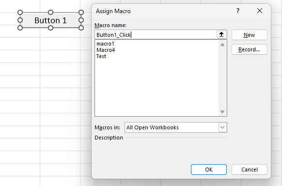 Kotak dialog Assign Macro akan muncul secara otomatis.