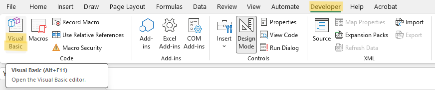 Anda dapat memeriksa dan mengedit kode VBA yang Anda rekam melalui VBA Editor. VBA editor dapat diakses dengan menekan tombol Alt + F11 atau dengan mengklik tab Developer → Visual Basic.