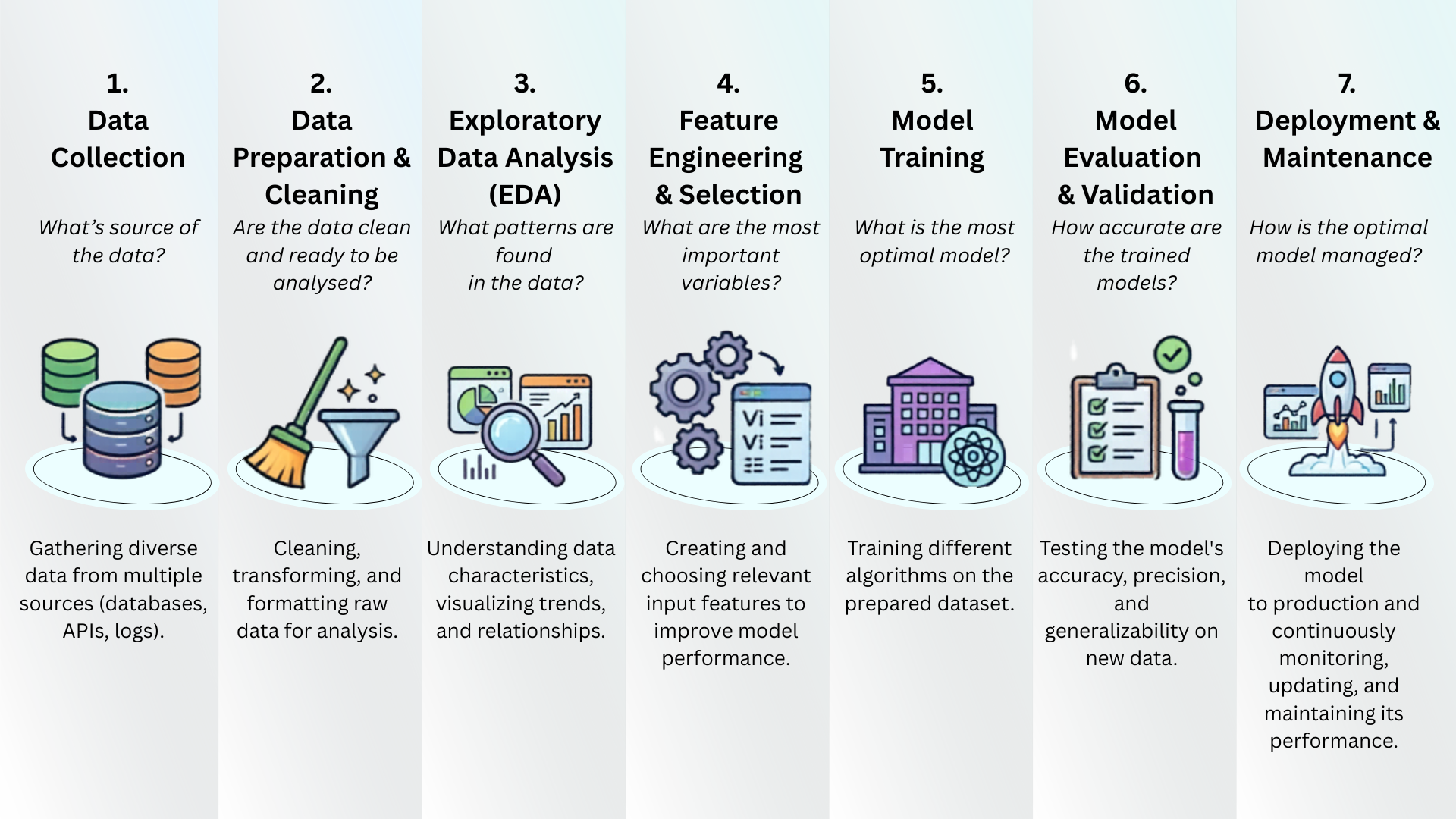 Dalam praktiknya, ML bukan sekadar tentang algoritma, melainkan sebuah proses panjang. Pipeline ML merujuk pada alur kerja menyeluruh (end-to-end), dimulai dari penanganan data mentah hingga menghasilkan model yang siap digunakan di dunia nyata.