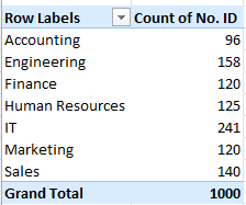 Hasil Pivot Table: Jumlah karyawan per departemen